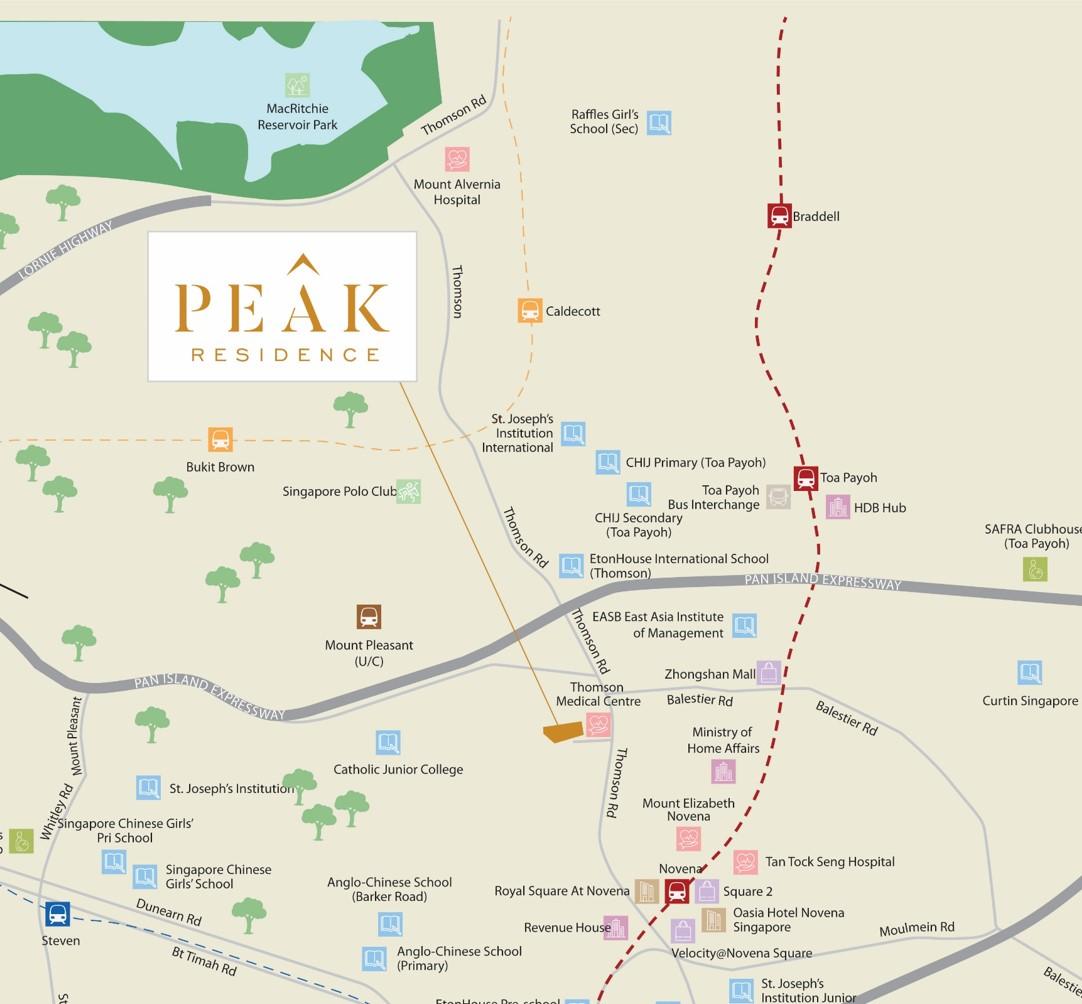Peak Residence is also conveniently placed near several commercial complexes such as United Square Shopping Mall, Novena Square, and others. There are various cuisines to choose from in the Novena-Thomson and Balestier areas, so you will be blessed for choice when it comes to entertainment and dining.